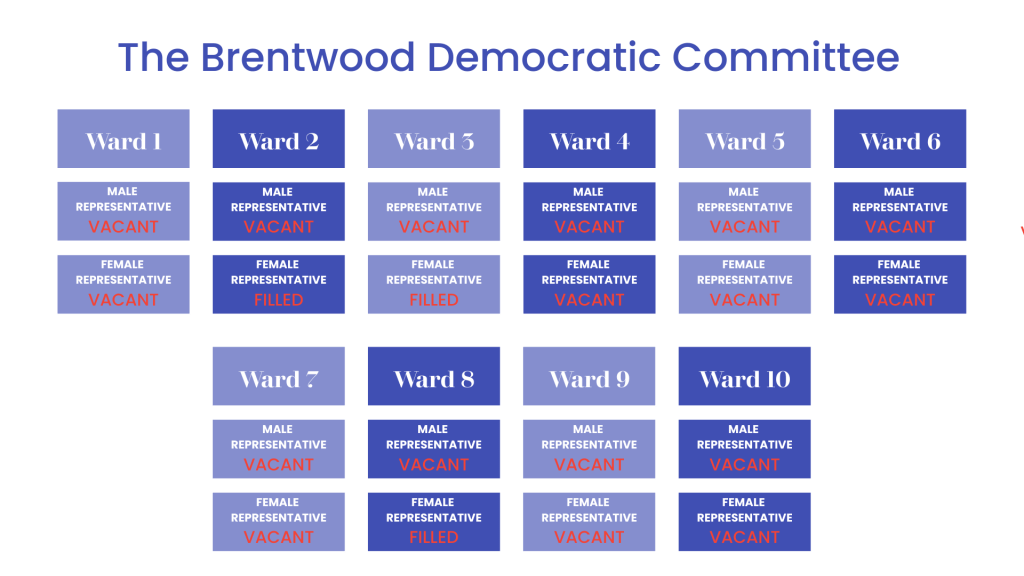 The Brentwood Democratic Committee works year-round to promote endorsed Democratic candidates for office and to encourage people to vote.